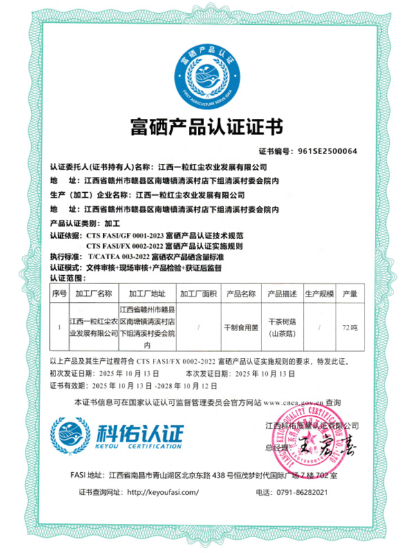 江西一粒紅塵農業發展有限公司是一家總部位于江西省贛縣的現代農業多元型企業,專注于食用菌的研發種植、深加工、貿易、研教培、農文旅等全產業鏈發展。公司秉承“健康、綠色共享、共贏”的核心價值觀,致力于引領鄉村振興之路,旨在成為......